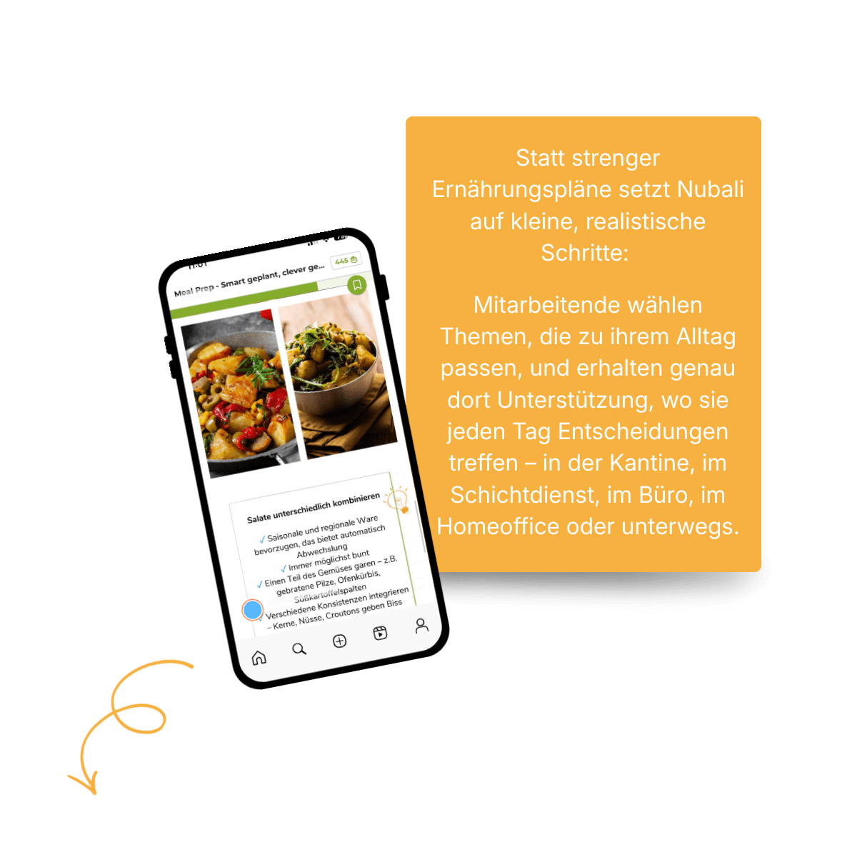 Die Nubali-App ist so entwickelt, dass sie sich problemlos in den Alltag Ihrer Mitarbeitenden integrieren lässt: