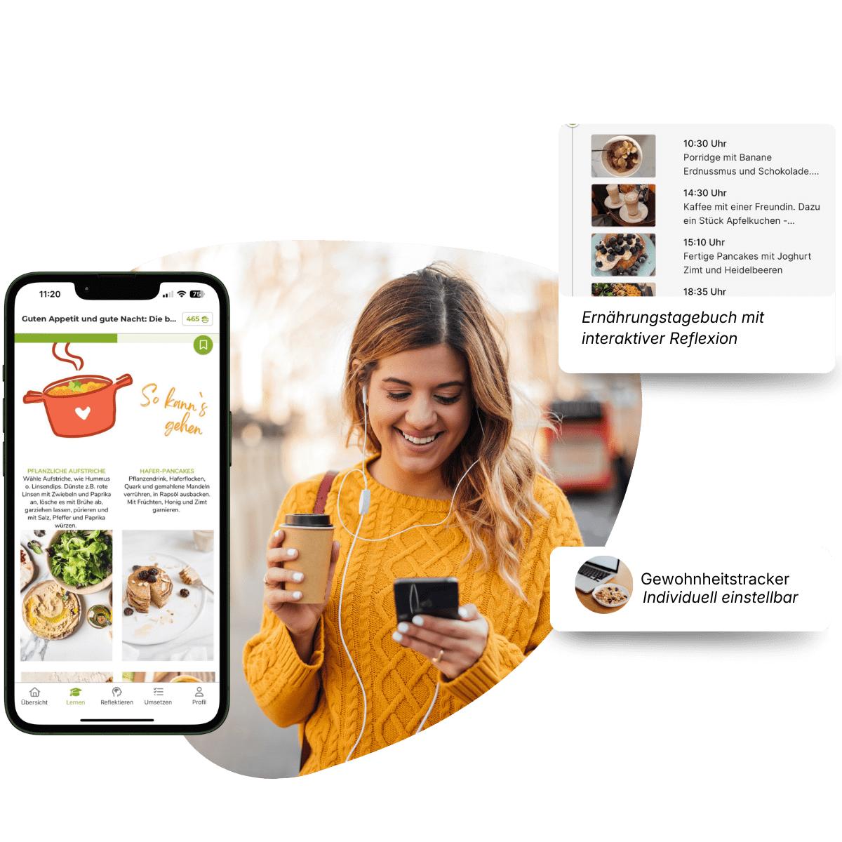 Gewohnheiten, als auch das Essverhalten können getrackt werden. Allerdings zur Analyse, nicht für Perfektionismus. Deswegen werden bei uns auch keine Kalorien getrackt!